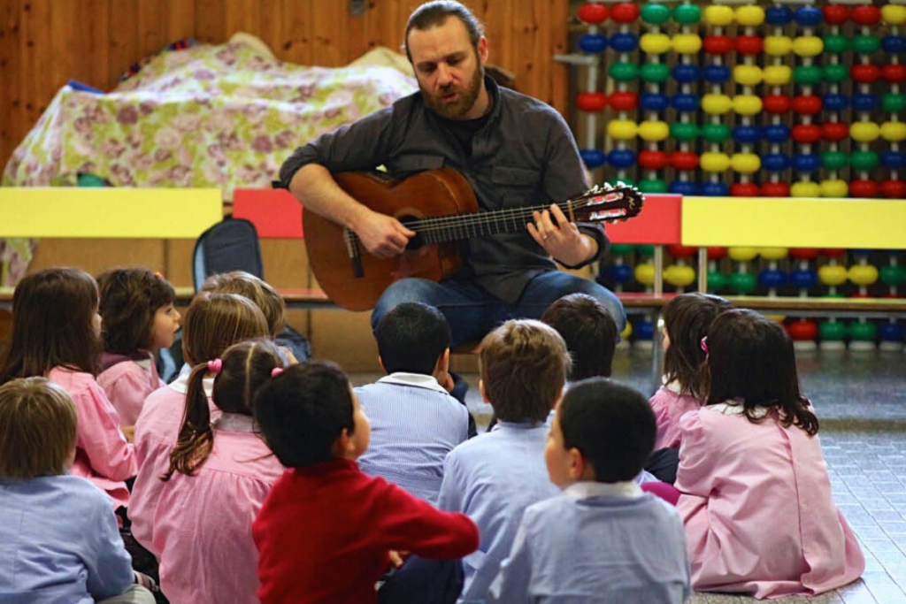 Ci sono le canzoni pensate per i bambini, gli incontri dal vivo, i percorsi di formazione rivolti agli insegnanti e il lavoro di musicoterapia.